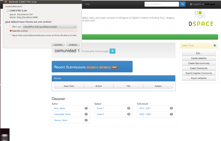 Los siguiente procedimientos deben realizarse por el responsable, persona a cargo o quien administre el repositorio institucional.