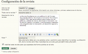 El OJS (Open Journal System) proporciona al usuario una interface de manejo de contenidos de revistas digitales para el registro de información de una revista y registro de artículos.