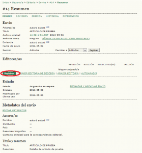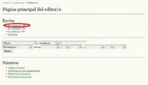 2. Revisar los artículos que han sido enviados a la revista en la pagina principal del editor.